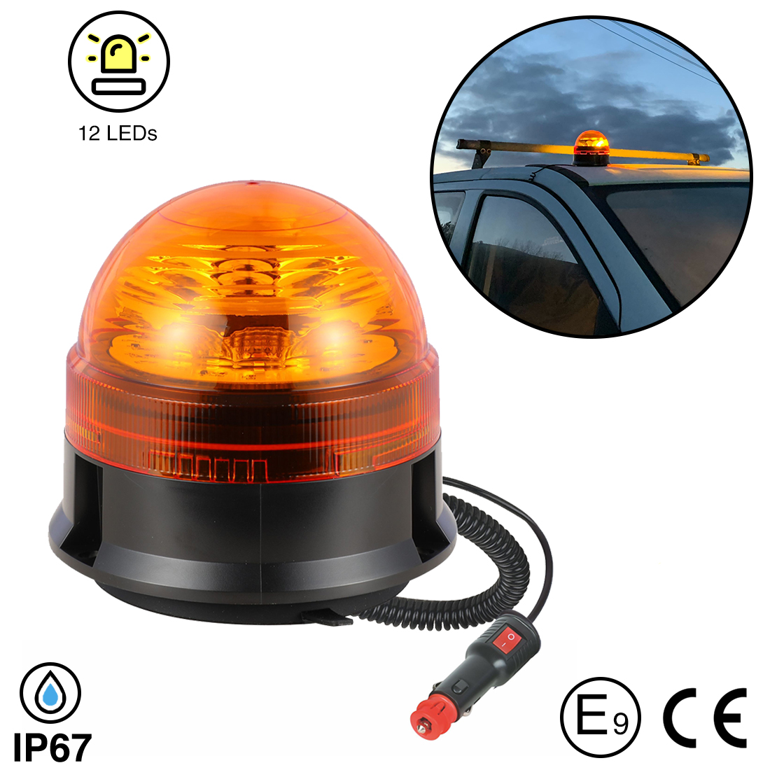 ECE R65 genehmigt, 12/24V , 12LED x 3W Leistung.Curly Kabel & Stecker. #811 Ersatz grüne Linse (nicht enthalten).